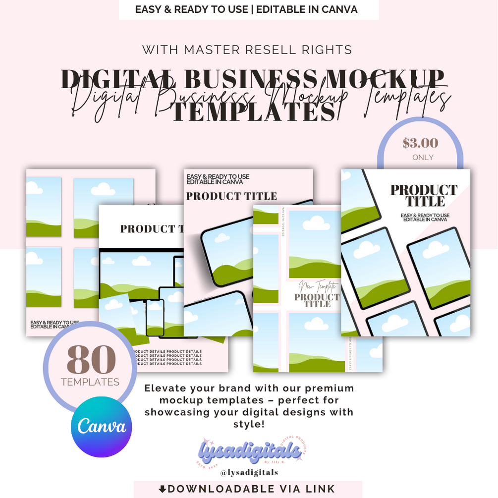 80 MOCKUP TEMPLATES | EDITABLE IN CANVA | MASTER RESELL RIGHTS | BY: LYSADIGITALS