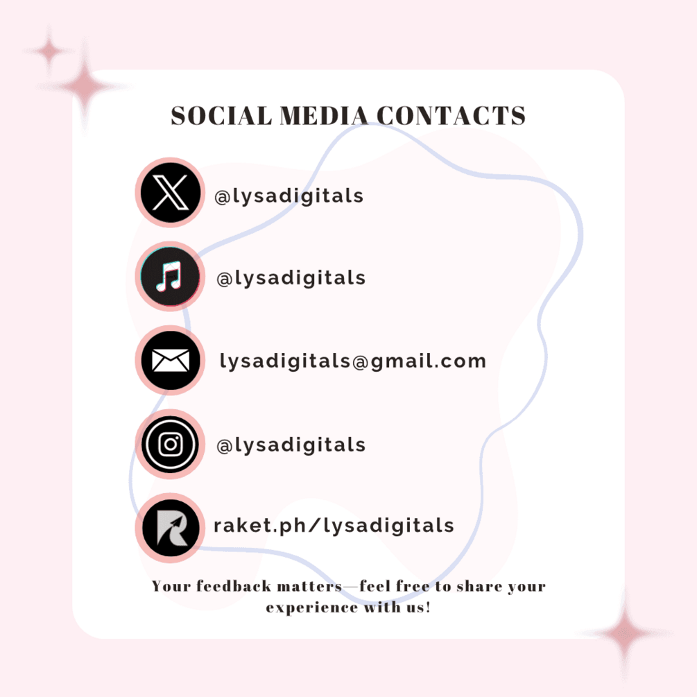 For any concerns, you may directly contact me here in GUMROAD or email me at lysadigitals@gmail.com.