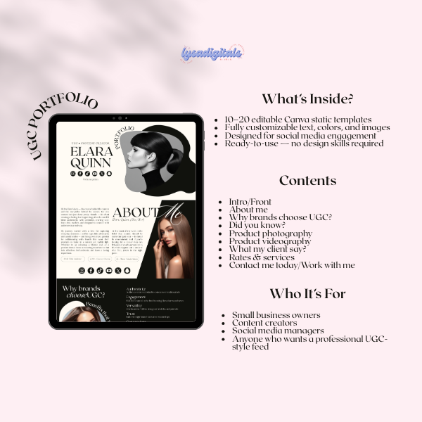 UGC PORTFOLIO + 2 PAGES MEDIA KIT | EDITABLE IN CANVA | BY: LYSADIGITALS