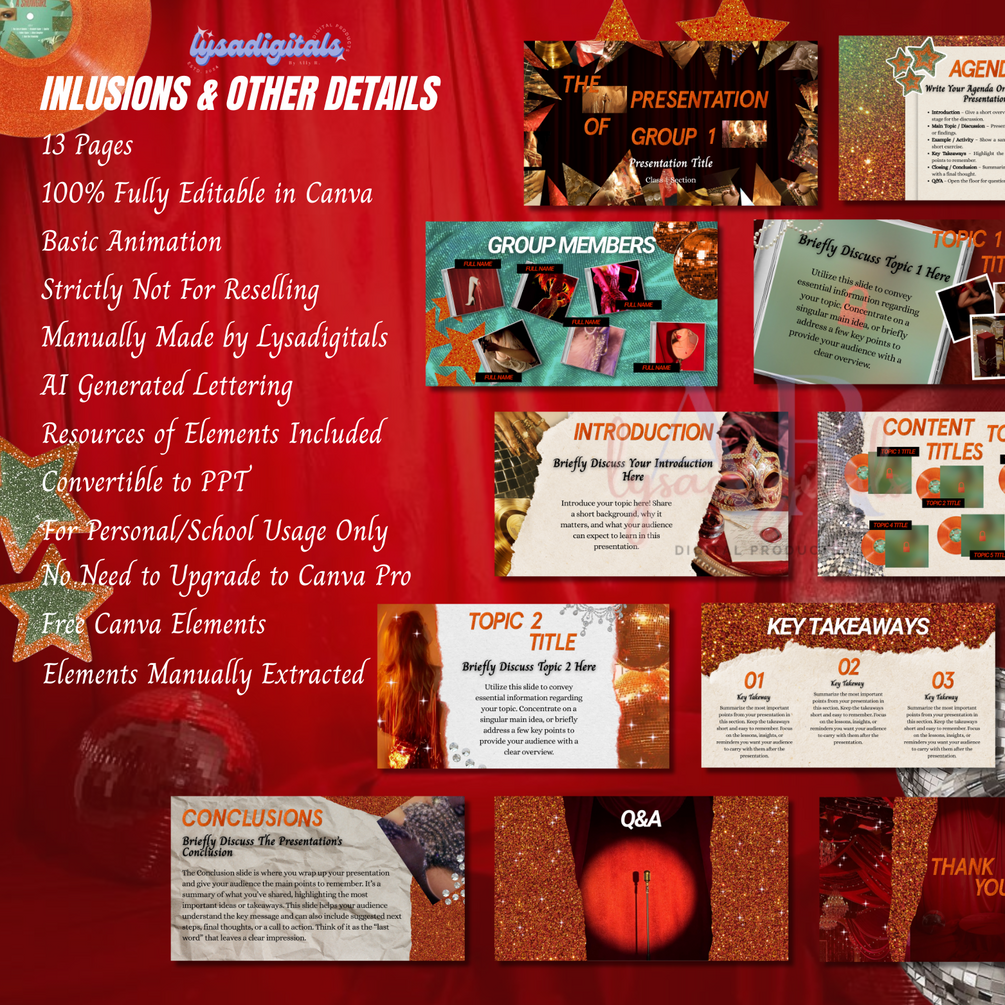 💃 Step into the spotlight with this bold and glamorous presentation template perfect for group or individual projects! Inspired by the dazzling life of a showgirl — full of confidence, glitter, and star power ✨🪩