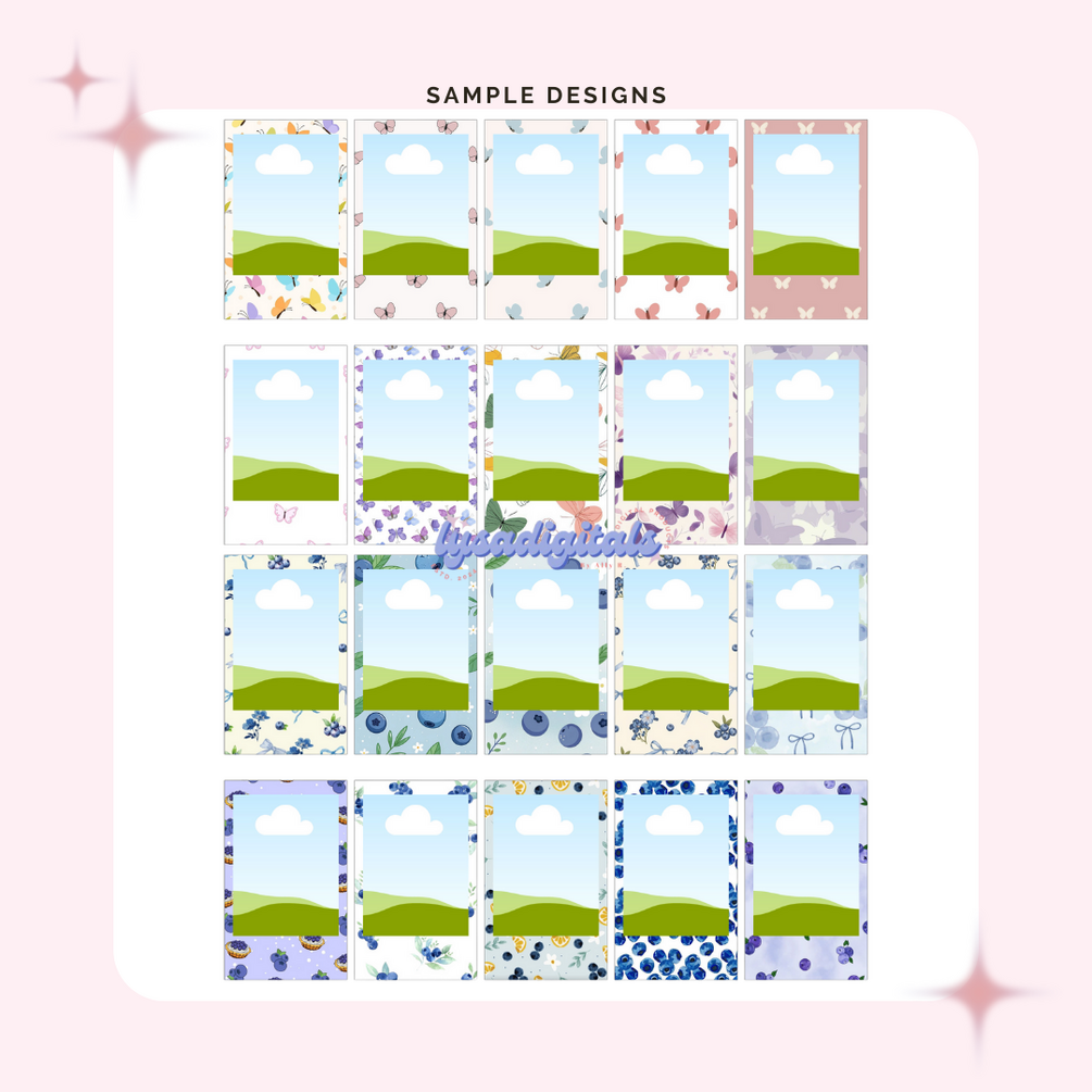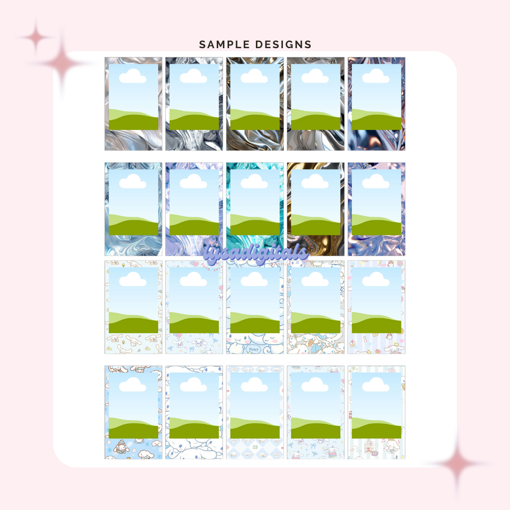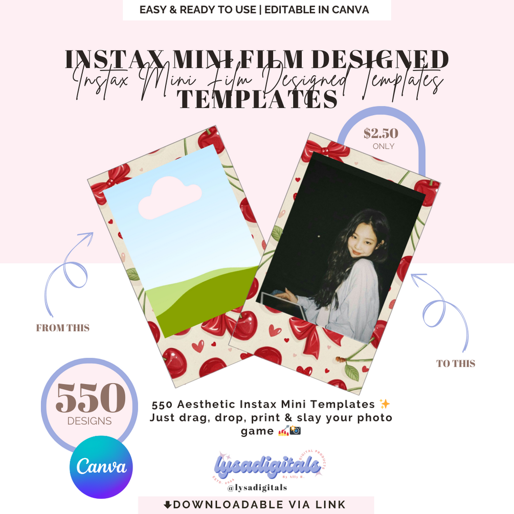 550 Pre-Made Instax Mini Film Designs: Professionally curated templates with various aesthetics, ready to drag, drop, and print. No design skills needed!