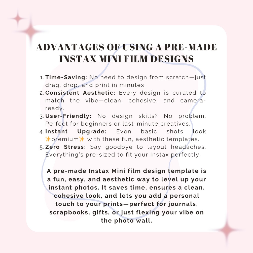 1. Easy-to-Use Files: Compatible with all popular editing apps, designed to fit perfectly on Instax Mini films.