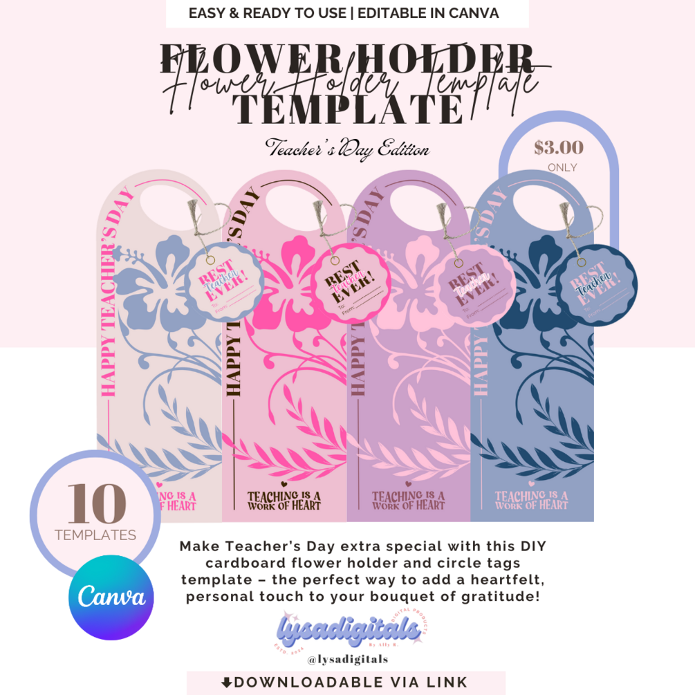 10 DESIGNS FLOWER HOLDER TEMPLATE WITH CIRCLE TAGS (TEACHER’S DAY EDITION) | EDITABLE IN CANVA | BY: LYSADIGITALS