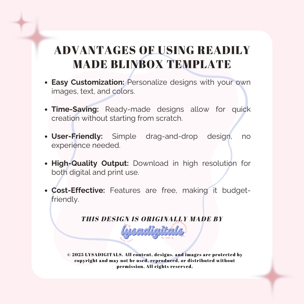 With simple drag-and-drop features, the BlindBox Template set is perfect for creators, small businesses, or anyone looking to offer a fun and unforgettable birthday surprise. Elevate your gift-giving game today with this all-in-one Canva template kit!